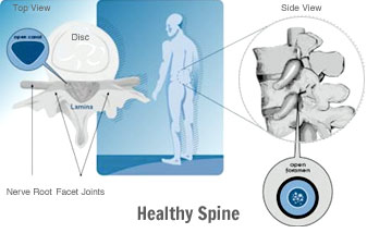 Abstand zwischen den Nerven und den Rückenwirbeln, wodurch Druck auf die Nervenwurzeln oder das